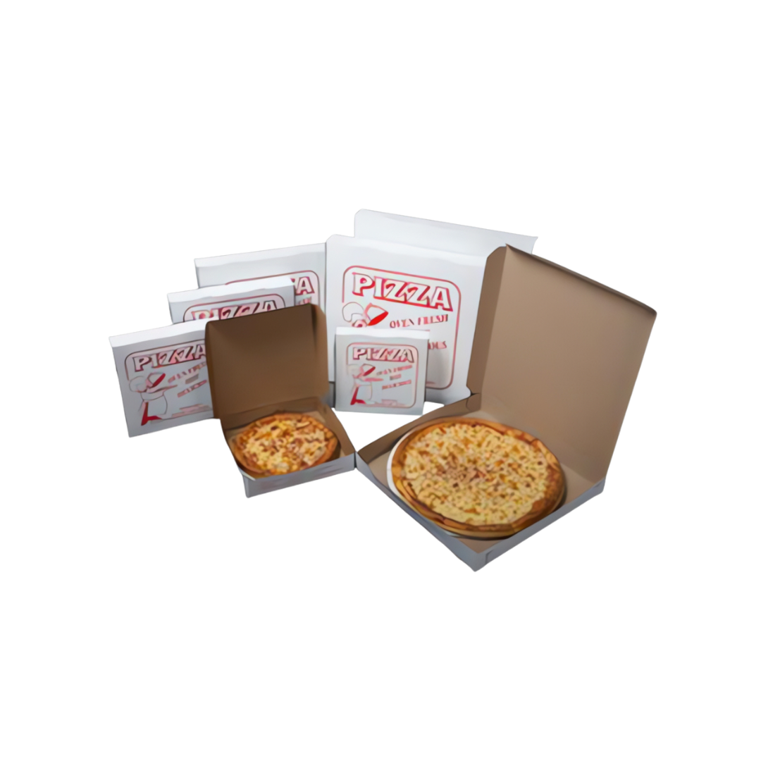 Our premium quality clay coated pizza boxes are available unprinted or with our stock print design. They are made from prime recycled CRB and SUS paperboard. Easy lock corners make for quick set-up. Packed in poly.