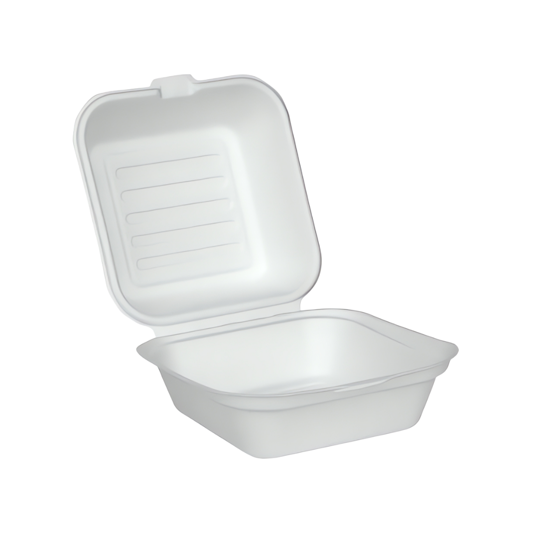 Formulated Molded Fiber Clamshell Container, White, 6″, N/A PFAS, 1/CS/500